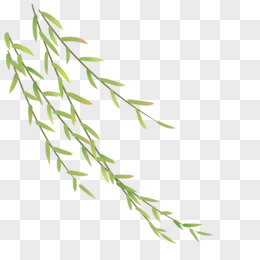卡通手绘春天随风飘舞的绿色柳叶免抠元素