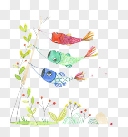 水彩鲤鱼旗