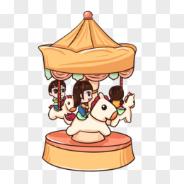 手绘卡通旋转木马元素