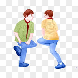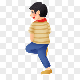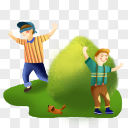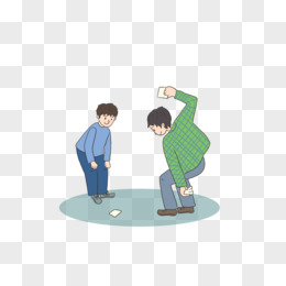 卡通手绘男孩玩斗鸡游戏素材