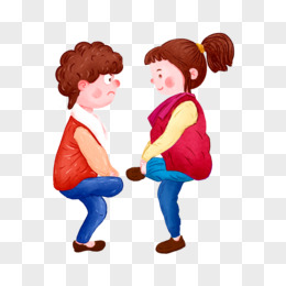 卡通手绘男孩女孩玩斗鸡素材