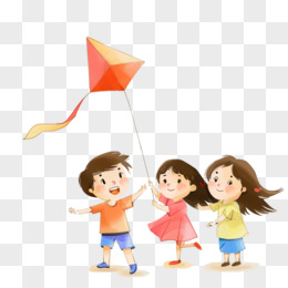 可爱的小朋友开心的一起放风筝卡通元素