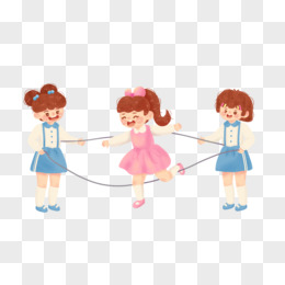 卡通手绘插画风小朋友跳皮筋免抠元素