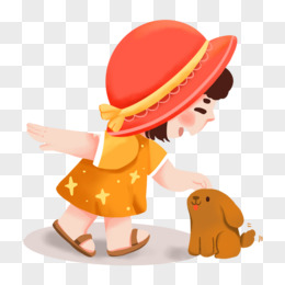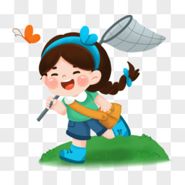 卡通手绘女孩玩斗鸡素材