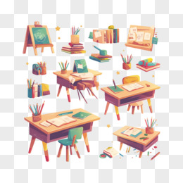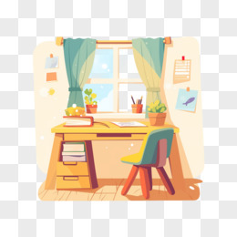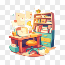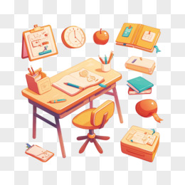 卡通手绘小学生的学习桌免抠元素