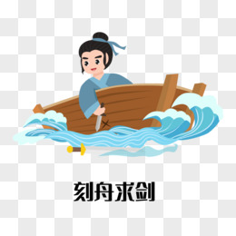 一组矢量古代成语故事合集刻舟求剑元素