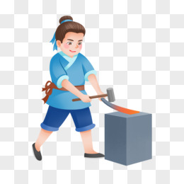 手绘插画古人打铁元素