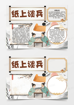 纸上谈兵成语故事教育意义手绘卡通手抄报