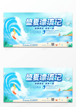蓝色大气手绘卡通盛夏漂流记娱乐展板