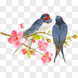 卡通蓝色花朵鹩哥手绘壁纸海报背景