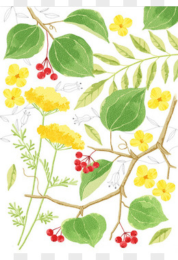 手绘矢量花朵花苞树叶插画元素