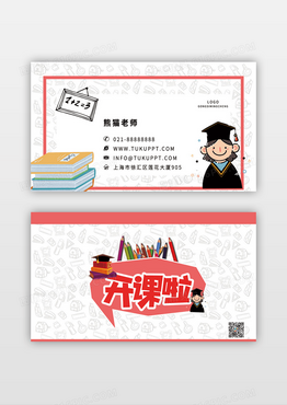 矢量元素红色手绘卡通课题书本开课啦辅导班名片