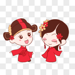 手绘卡通中式婚礼新人结婚