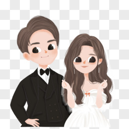 卡通手绘q版结婚照免抠元素