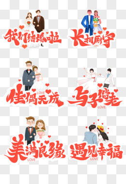 一组卡通手绘风婚礼主题艺术字