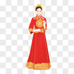 手绘卡通新娘中式婚纱素材