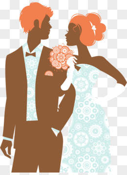 温暖手绘风格现代蕾丝婚纱与笔挺西装柔和的粉蓝配色相拥在一起的结婚照免抠元素