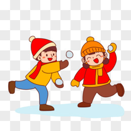 手绘卡通小伙伴们一起打雪仗免抠素材