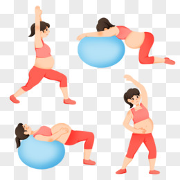 一组手绘卡通孕妇瑜伽锻炼合集免抠素材