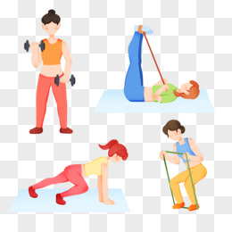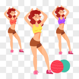 一组手绘卡通女孩锻炼合集插画之开合跳免抠元素