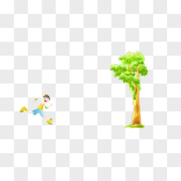 树 手绘 水彩 运动 男孩 卡通