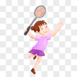卡通手绘女孩打羽毛球运动素材