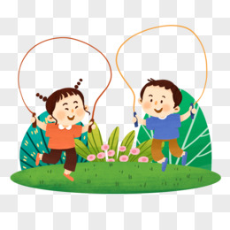 卡通手绘男女儿童跳绳比赛手绘元素
