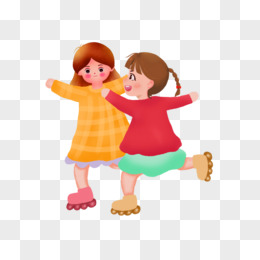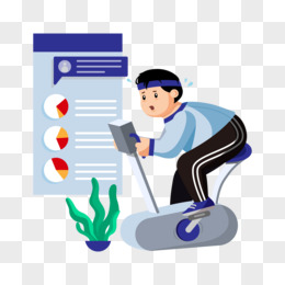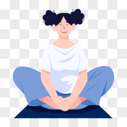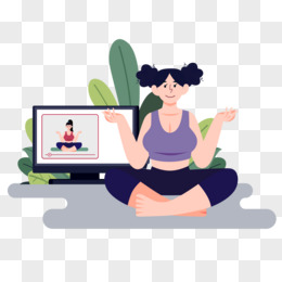 卡通手绘少女跟着视频做瑜伽锻炼免抠元素