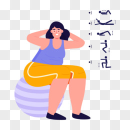 卡通手绘小胖妹减肥做瑜伽运动免抠元素