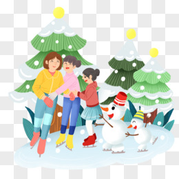 手绘插画风小朋友和雪人滑冰创意插画元素