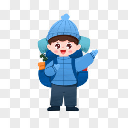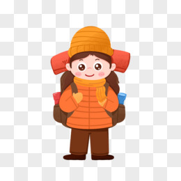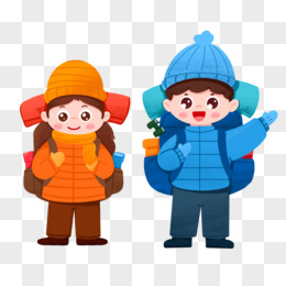 卡通手绘男孩女孩背着行军包户外活动免抠元素