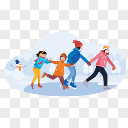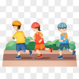 手绘卡通小孩子们一起轮滑场景免抠素材