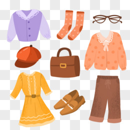 一组手绘秋装穿搭合集免抠元素