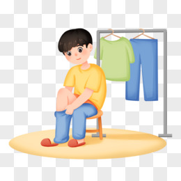 手绘插画穿裤子的男孩免抠素材