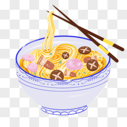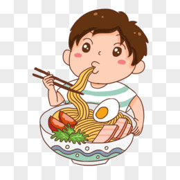 手绘卡通女孩冬天拿筷子吃拉面免抠元素