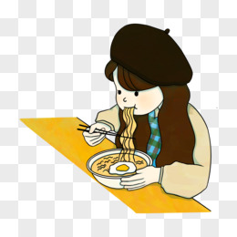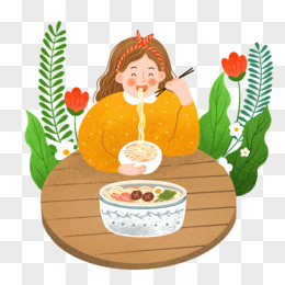 手绘卡通女生吃面免抠元素