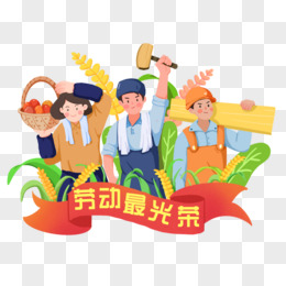 卡通手绘劳动最光荣人物合成插画元素