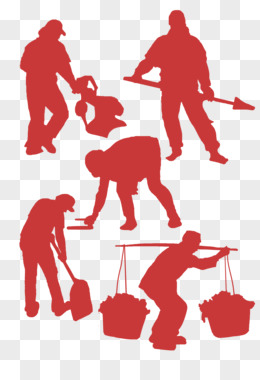 一组手绘劳动中的人剪影套图素材