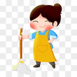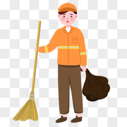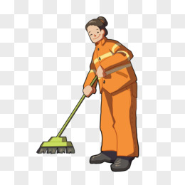 卡通手绘免抠环卫阿姨打扫卫生素材