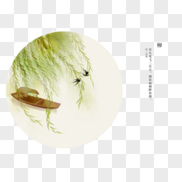 卡通手绘春天随风飘舞的绿色柳叶免抠元素