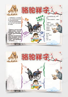米色骆驼祥子可爱文章手绘插画手抄报思维导图