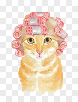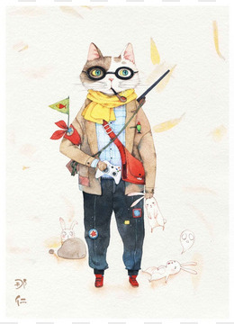 卡通手绘拟人猫咪小猫大厨煎鱼烹饪做菜素材