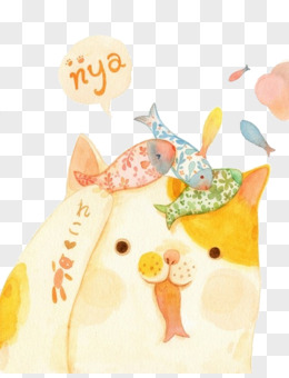 水彩手绘猫咪图案
