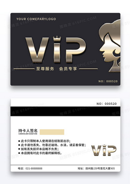 黑金烫金插画手绘美容美发vip会员尊享卡美发会员卡