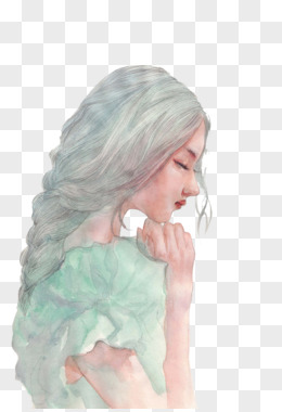 手绘长发女郎设计矢量素材