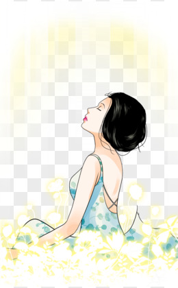 国潮旗袍女荷花鱼手绘卡通时尚素材