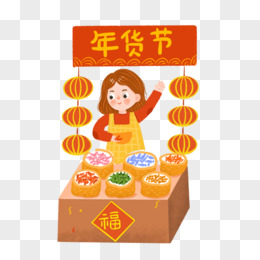 手绘年货置办商铺免抠元素