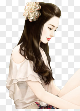 手绘卡通唯美手捧鲜花的女性免抠素材