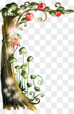 手绘卡通父亲赔儿子摘苹果免抠元素