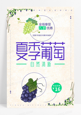 简约手绘葡萄水果广告海报